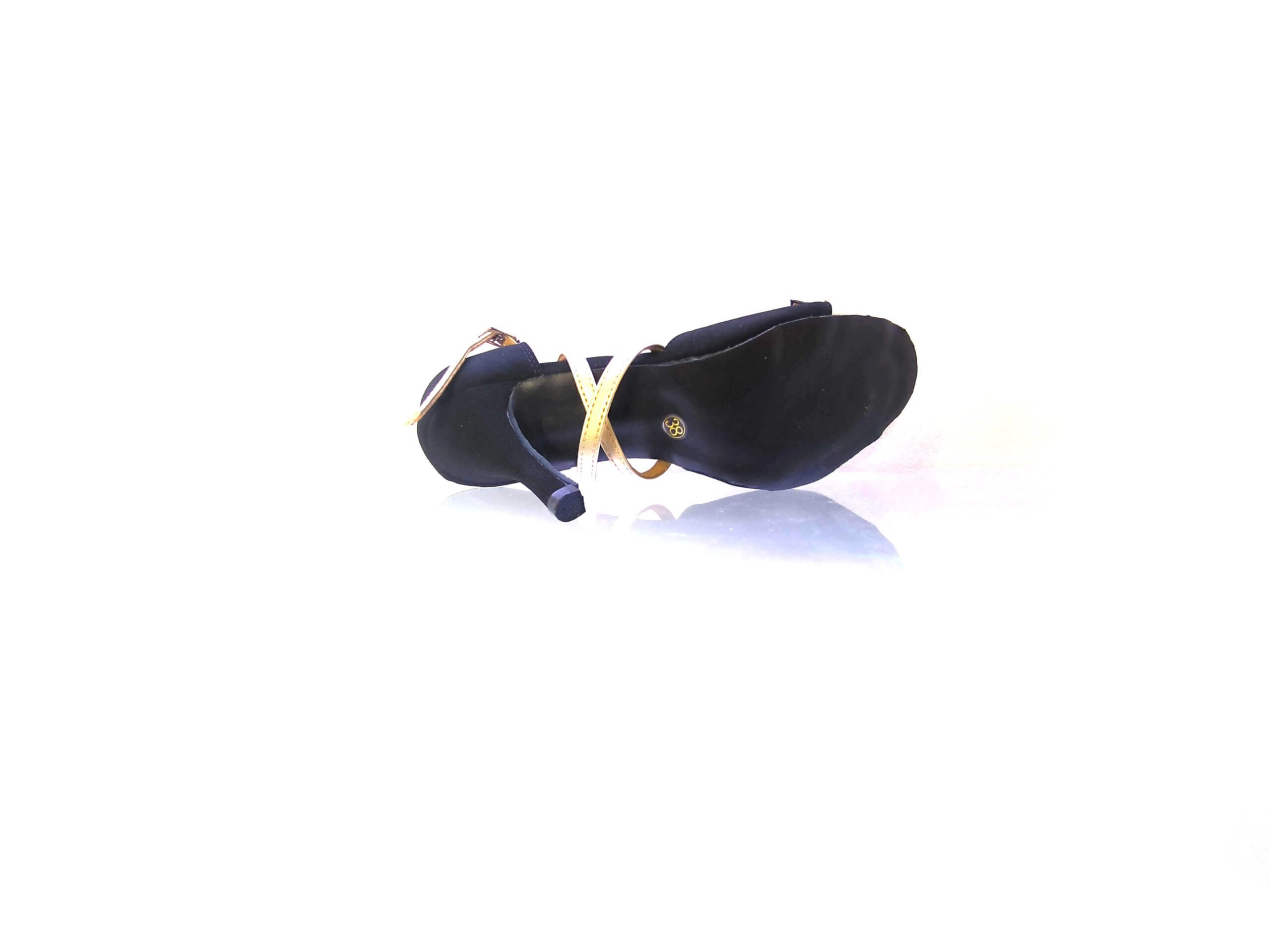 Ekskluzywne połączenie czarnego nubuku ze złotym wykończeniem, doda Ci poczucia wyjątkowości i podkreśli piękno kroków tańca.